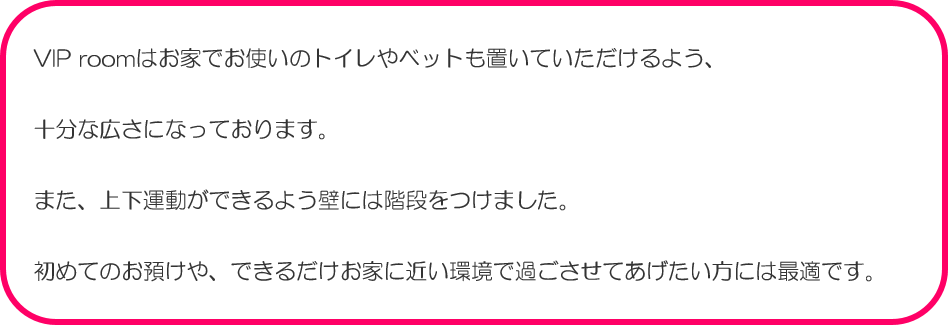 ※多頭の場合、同じお部屋に入れることができます。(金額は、頭数分の料金がかかります。)
